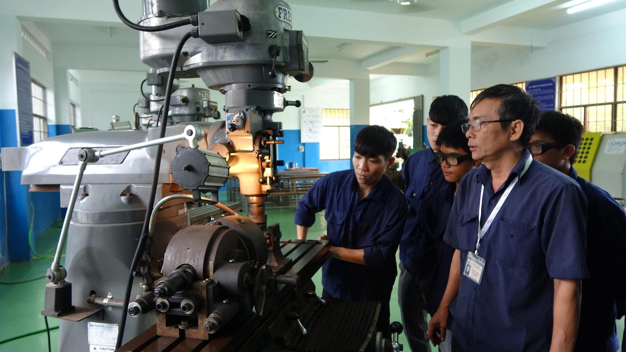 Một buổi thực hành của ngành Kỹ thuật cơ khí tại trường Cao đẳng Công Thương miền Trung