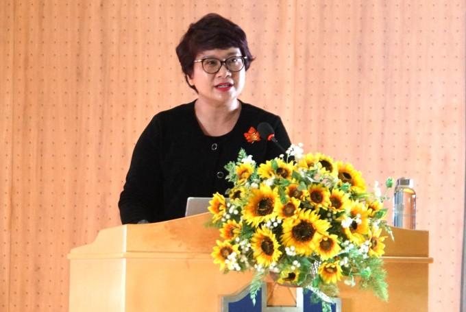 Bà Thủy chia sẻ kế hoạch tuyển sinh 2024 dự kiến, sáng 15/3. Ảnh: Lệ Nguyễn