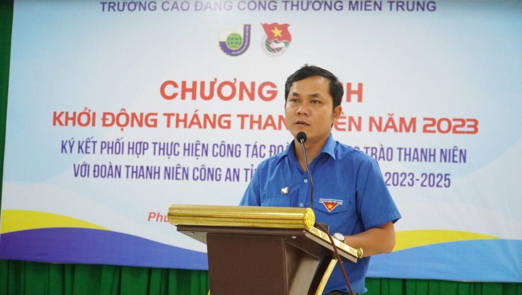 Phát biểu khai mạc chương trình đồng chí Nguyễn Tấn Khả – Bí thư đoàn trường triển khai các hoạt động trọng tâm của đoàn trường trong tháng Thanh niên. Bên cạnh đó kêu gọi và đề nghị các cấp bộ Đoàn, đoàn viên thanh niên trong toàn trường phát huy tinh thần nhiệt huyết và sáng tạo tổ chức thực hiện hiệu quả các nhiệm vụ đặt ra.