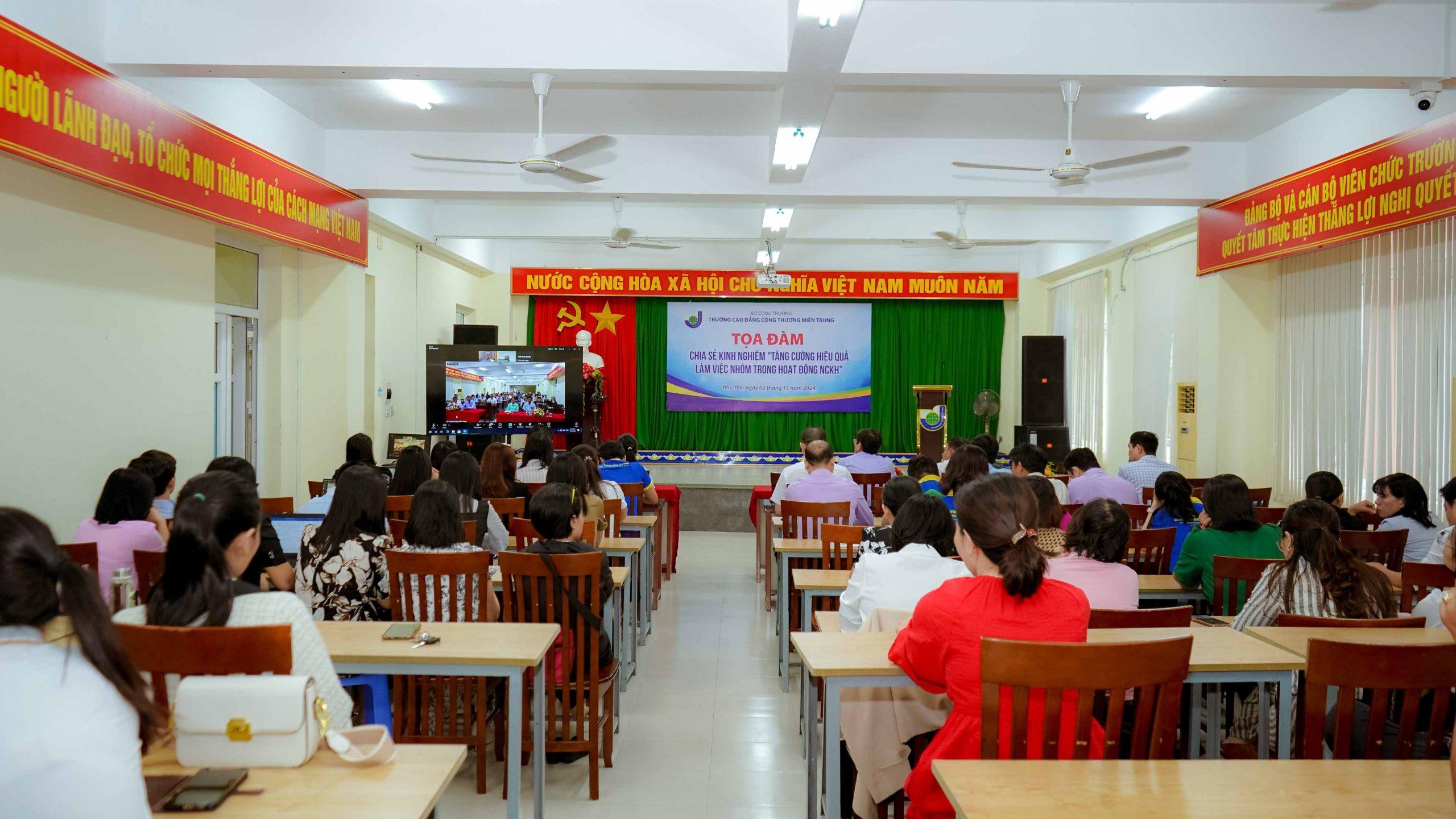 Ngày 2/11/2024, tại hội trường B2, cơ sở 2, Trường Cao đẳng Công Thương miền Trung đã tổ chức thành công buổi tọa đàm "Tăng cường hiệu quả làm việc nhóm trong hoạt động nghiên cứu khoa học "