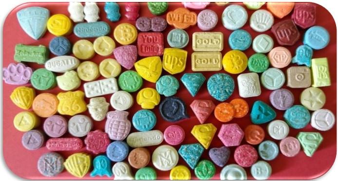 | Thuốc lắc (hay còn gọi là Ecstasy), một loại ma tuý tổng hợp thường được sản xuất dưới dạng viên nén, viên nang |